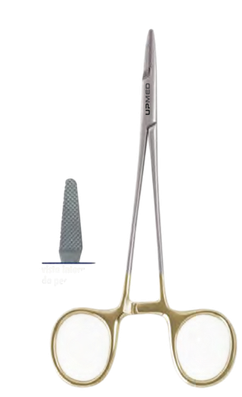 ✅Reduzir a fadiga da mão Como a ferramenta segura a agulha com mais eficiência, o cirurgião exerce menos pressão nas argolas para mantê-la travada.;